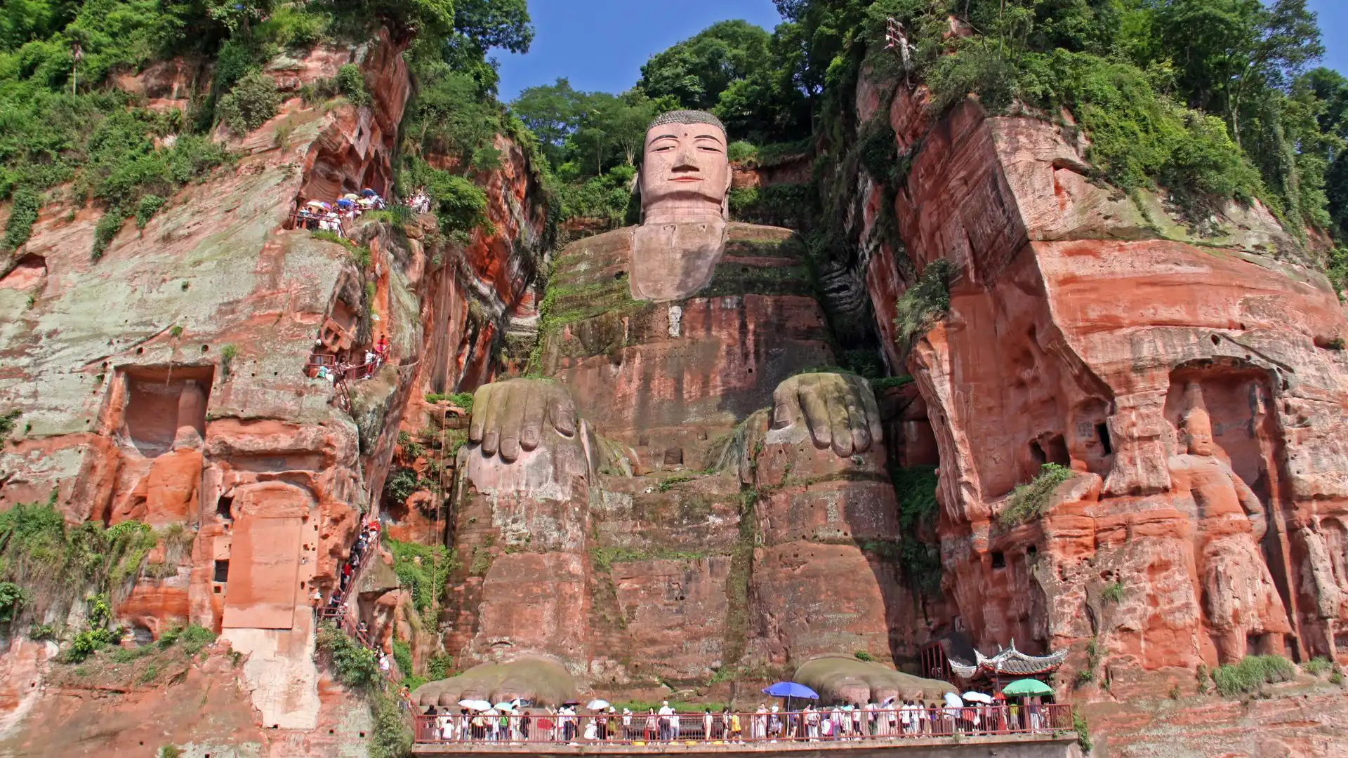– Excursão a Leshan para conhecer o Grande Buda, a maior estátua de Buda esculpida em pedra do mundo, integrada à paisagem fluvial.